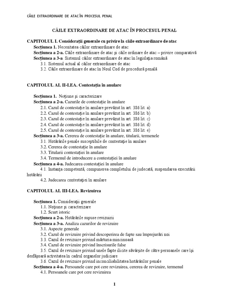 Alte cai extraordinare de atac in procesul civil caracterizare generala vi 1 contestatia in anulare vi 2 revizuirea vi 3 recursul in interesul legii vi 4 recursul in anulare. 78 sectiunea a iii a. Legalitatea caii de atac. Concluzii observatii si propuneri de lege ferenda vii 1 concluzii vii 2 observatii si propuneri de lege ferenda.