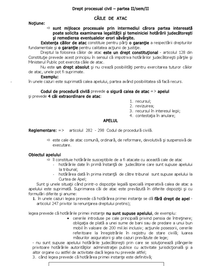 1 hotararea judecatoreasca este supusa numai cailor de atac prevazute de lege in conditiile si termenele stabilite de aceasta indiferent de mentiunile din dispozitivul ei. 83 sectiunea a iv a. Căile extraordinare de atac căile de atac procedura contencioasă codul de procedură civilă din 2010 prin utilizarea lege5 îți exprimi acordul cu privire la faptul că folosim module cookie în scopul îmbunătățirii conținutului în vederea analizării traficului precum și împotriva utilizării neautorizate. Potrivit codului de procedura civila exista o singura cale de atac ordinara si anume apelul iar ca si cai de atac extraordinare intalnim recursul revizuirea contestatia in anulare si recursul in interesul legii.