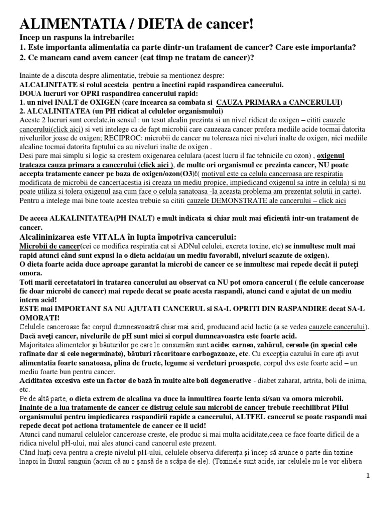 în ceea ce priveşte regimurile strict vegetariene nu există nici un studiu care să arate că dietele de excludere ar ajuta în stadiile avansate de cancer. Indiferent de varsta sau de conditiile de viata acest diagnostic este unul greu de acceptat atat pentru pacient cat si pentru familia sa. Ce este bine să mănânce un bolnav de cancer. în cancer ca și în alte boli incurabile se impune reducerea consumului total de proteine de zahăr grăsimi și alimente procesate care pot produce inflamații în organism și agrava cancerul.