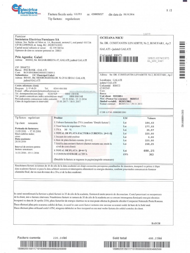 Acest cod e generat automat la activarea unui nou punct de măsurare în baza avizului tehnic de racordare. La cod atm si simbol variabil treceti. Aceste date le gasiti pe orice factura de la electrica pe care ati primit o. Transmite index autocitit vizualizează lista de facturi plătește facturile online activează factura electronică și multe altele.