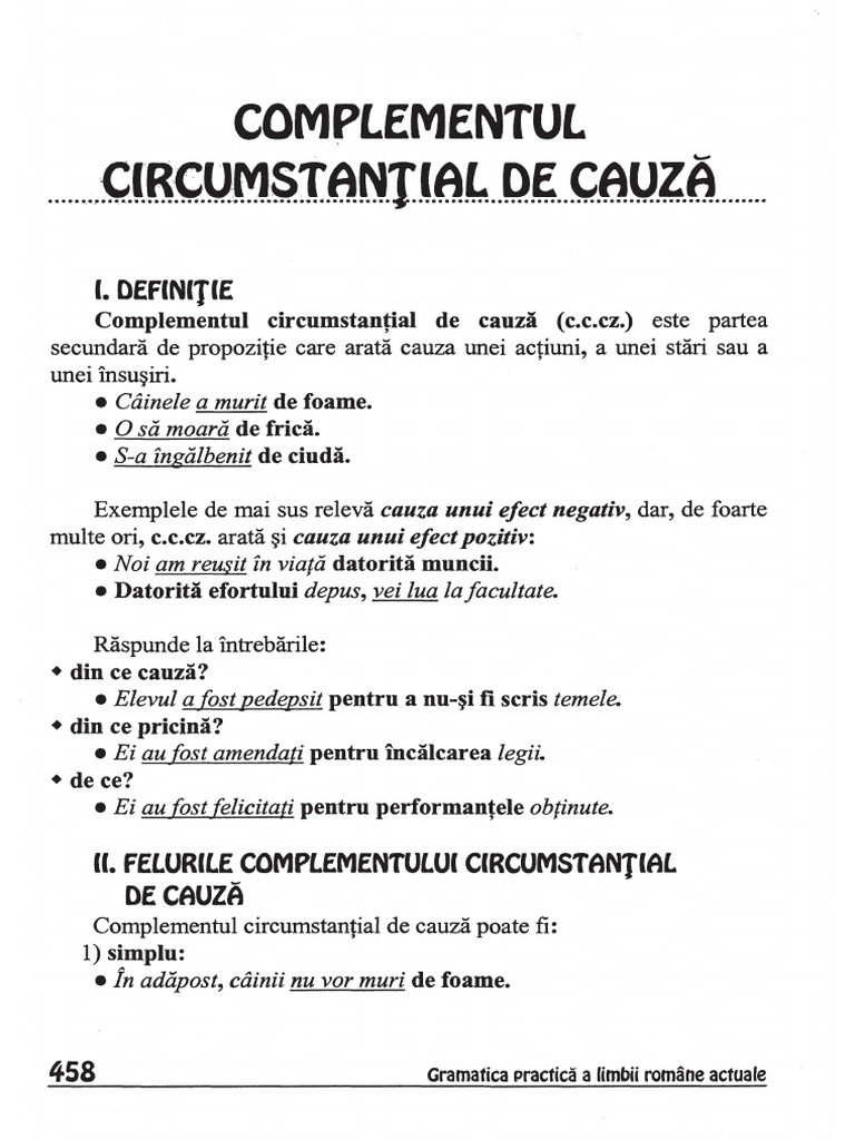 Complement Circumstantial De Cauza Exemple