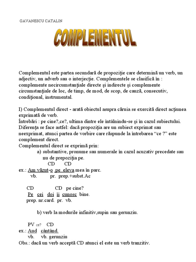 învățând în fiecare zi vei reuși la examene. Complementul circumstanțial de cauză determină. Această definiție generală este precizată în gramaticile a diverse limbi prin felul cum este exprimat complementul direct.