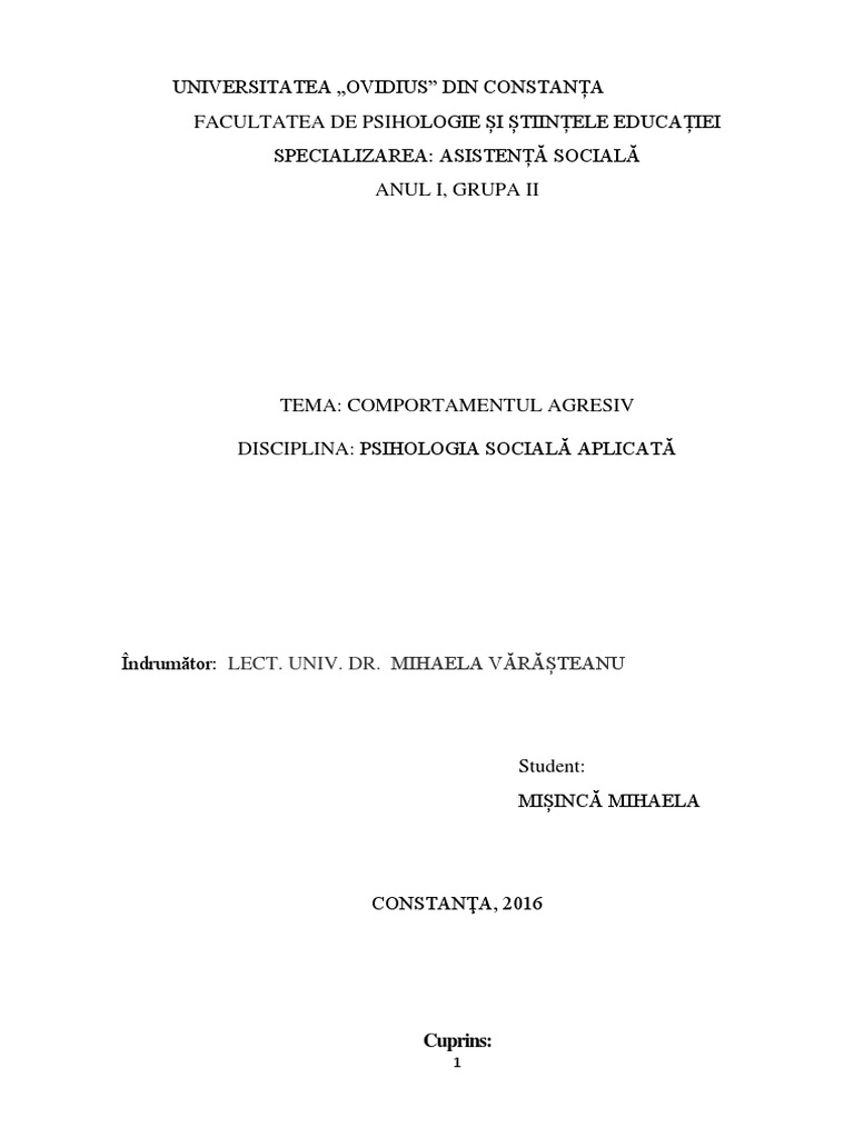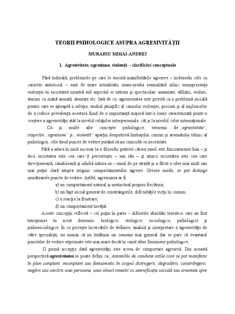Botea i iti recomandam sa te uiti bine pe extras si pe imaginile oferite iar daca este ceea ce ti trebuie pentru documentarea ta il poti descarca. Aceasta produce la rîndul ei o stare de pregătire readiness pentru comportamentul agresiv. De cele mai multe ori originile agresivității se regăsesc în copilărie însă trebuie ținut cont de faptul că agresivitatea este și un comportament social învățat în familie anturaj filme și emisiuni tv. Pe de altă parte comportamentul agresiv este orientat nu numai în afara subiectului ci şi asupra sinelui.