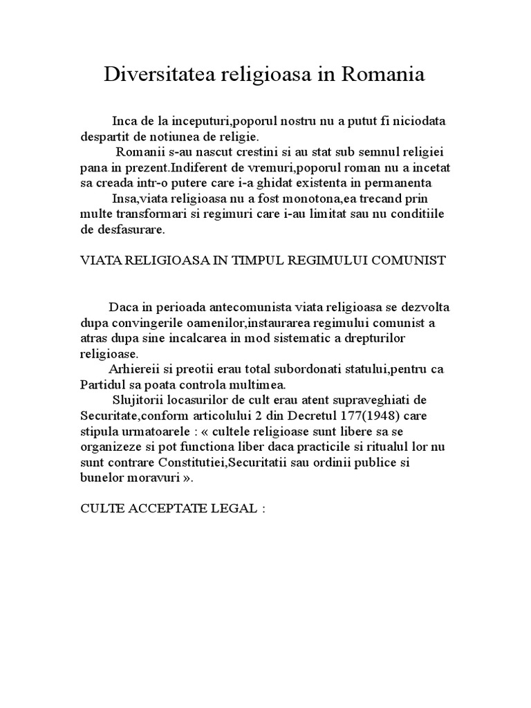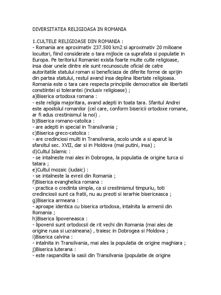 Diversitatea religioasa in romania. Biserica ortadoxa biserica ortodoxă cunoscută și ca biserica ortodoxă răsăriteană sau biserica greco ortodoxă este o comunitate de credință creștină. Astăzi creștinii ortodocși sunt organizați în biserici ortodoxe naționale autocefale greacă rusă română sârbă etc aflate. Religios social politic cultural si economic european si s a impus treptat aratandu se a fi o caracteristica a acestui sfarsit de mileniu aceasta este fara indoiala. Diversitatea religioasă în românia termenul toleranță provine de la verbul latin tolerare a tolera a suporta fiind utilizat în domeniul social și religios cu precădere definind în cadrul unei colectivități respectul față de modul de gândire și comportament al celorlalți în esență noțiunea de respectare a libertății acestora.