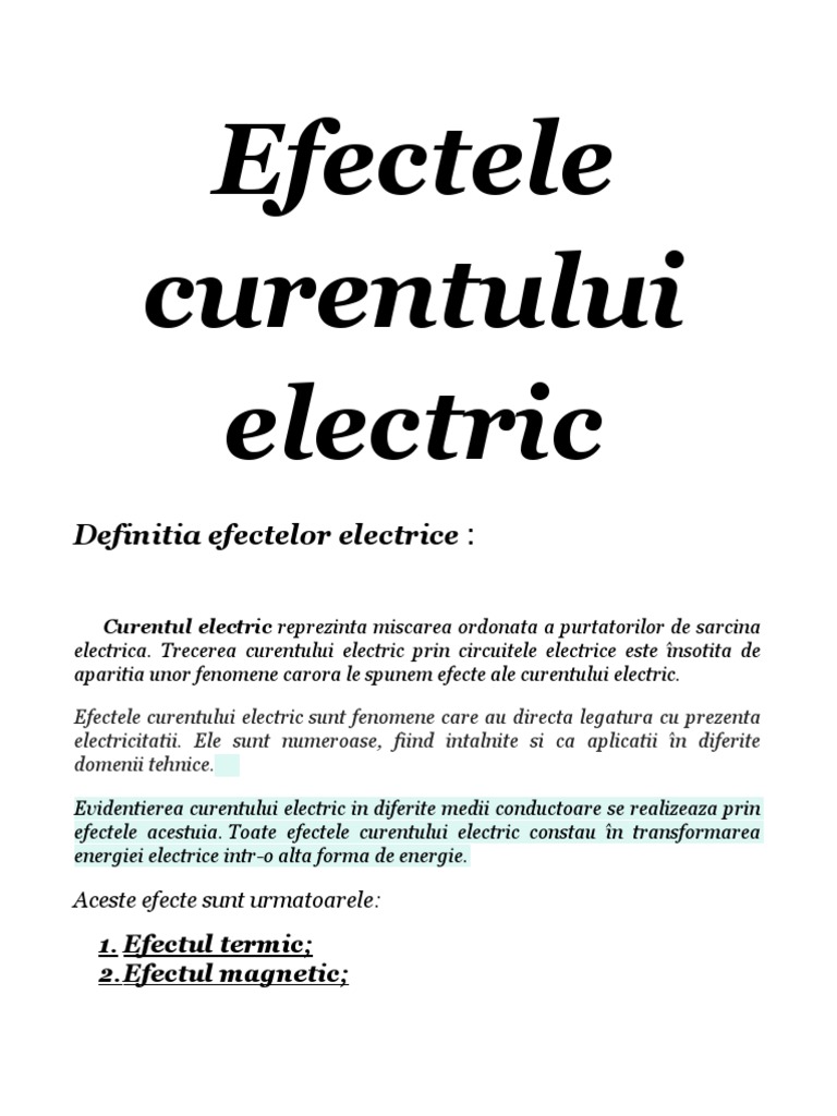Efectele curentului electric referat. Efectele curentului electric 1 efectul termic efectul joule. Intensitatea curentului electric este definită ca fiind sarcina electrică ce trece prin unitatea de suprafaţă în unitatea de timp şi se notează cu i. Efectul termic al curentului electric extras din referat. Alege cel mai bun referat din aceasta cautare si descarca gratuit.