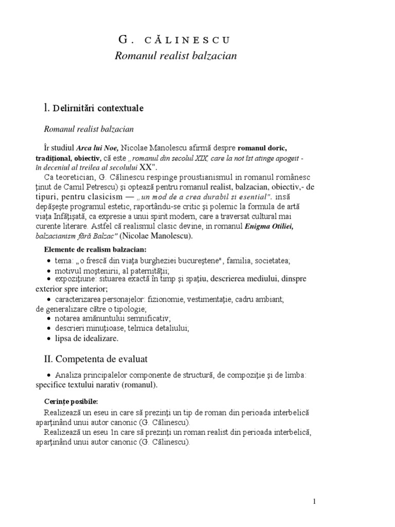 Romanul de tip balzacian enigma otiliei george calinescu. Astfel exista niste caracteristici generale ale romanului balzacian pe care daca le stim le putem folosi pentru a demonstra la subiectul 3 de exemplu de ce enigma otiliei este roman balzacian. Calinescu comentarii afirmatia criticului literar gheorghe glodeanu despre romanul lui george calinescu surprinde intr adevar cele mai importante trasaturi ale balzacianismului asimilat de prozatorul roman. Enigma otiliei roman balzacian.