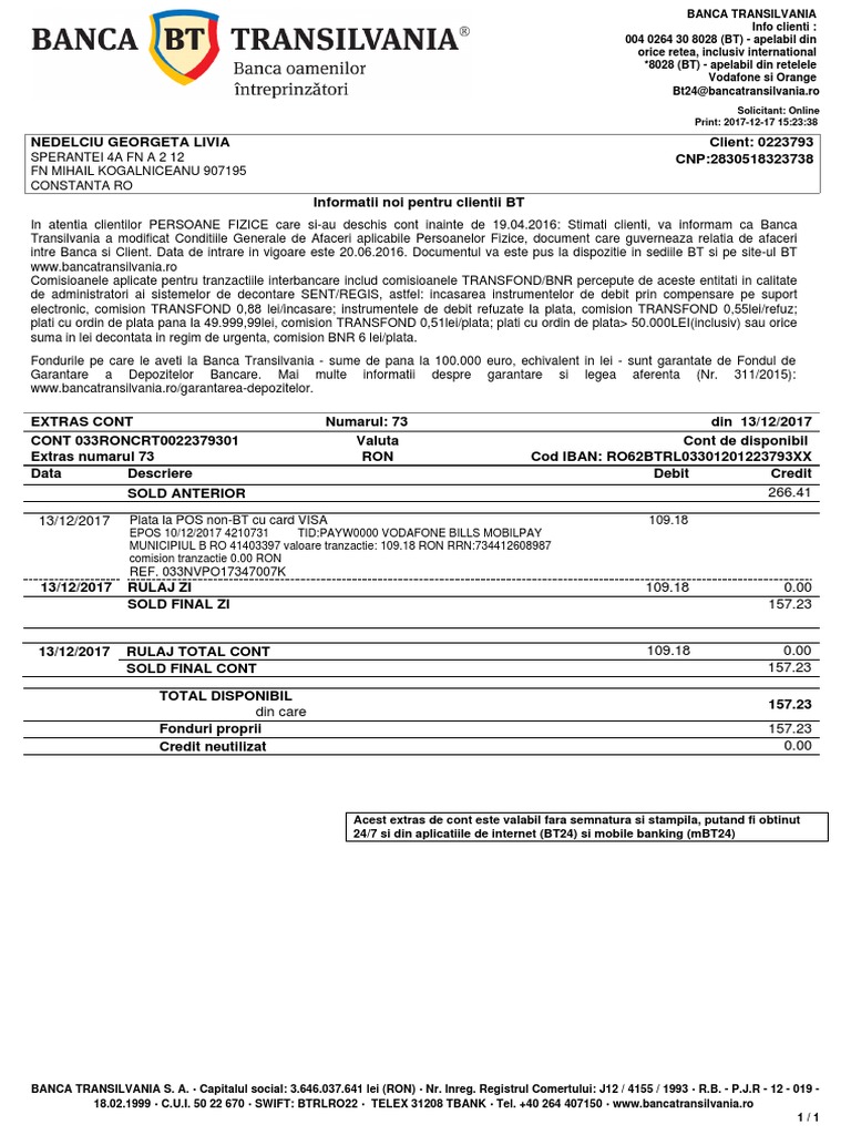 Extras de cont banca transilvania online. E bine sa stii ca acestea sunt valabile in relatia cu orice institutie fara a fi necesara semnatura sau stampila bancii. Afla totul pe site. Afli rapid informatii despre. Te loghezi in aplicatie selectezi contul pentru care ai dori sa obtii extrasul de cont alegi tipul de extras zilnic sau lunar apoi selectezi data pentru care.