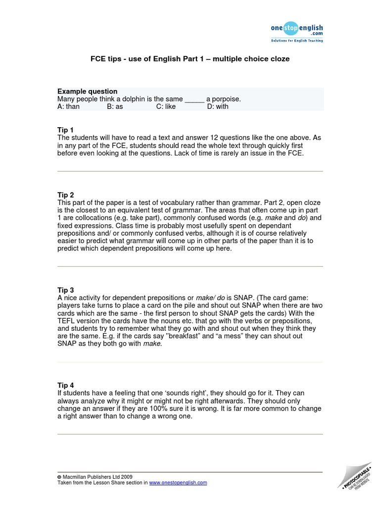 Fce Tips For The Use Of English Part Esl Worksheet By Lovemykids