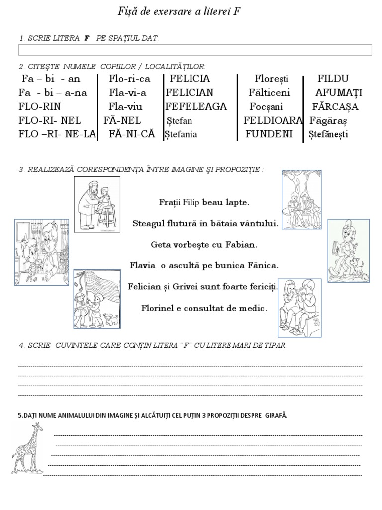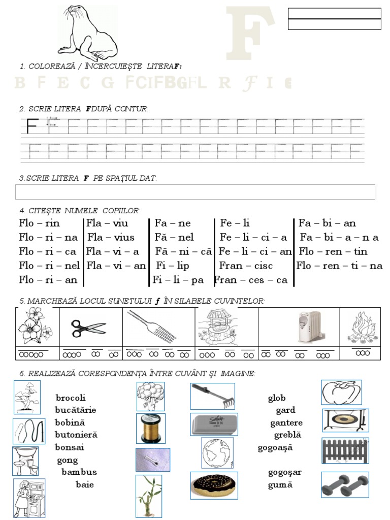 Fisa De Lucru Litera F Clasa Pregatitoare