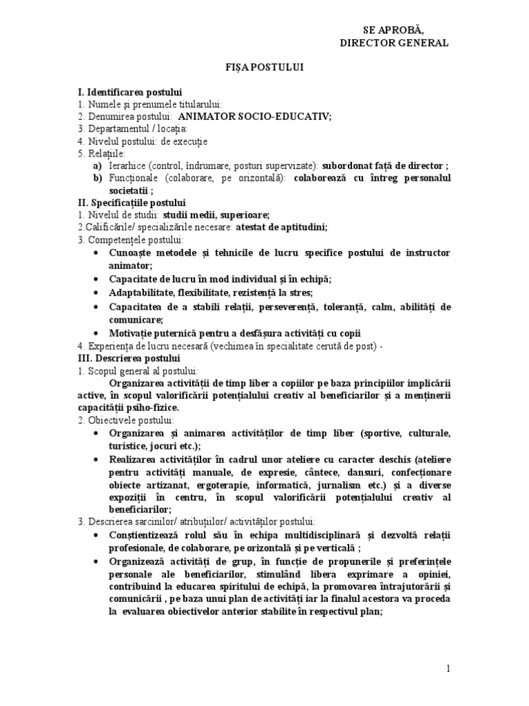 Fisa postului organizator evenimente fisa postului este un instrument managerial deoarece serveste urmatoarelor scopuri. Codul cor la zi. Coduri cor pentru toate ocupatiile. Fisa postului organizator spectacole model standard complex rubinian.