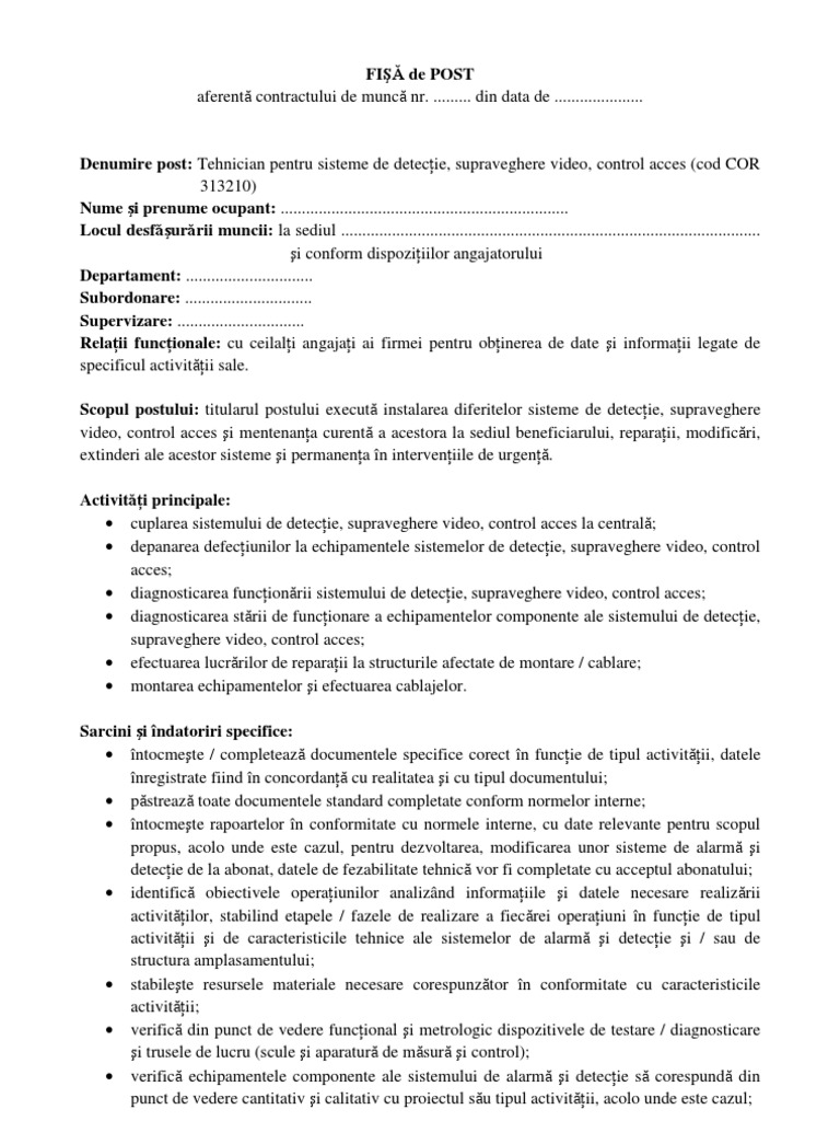 Va prezentam in randurile urmatoare un model de fisa a postului pentru pozitia de organizator relatii publice. In plus trebuie luate in consideratie si alte aspecte legate de postul respectiv cum ar fi stilul de management al supervizorului oportunitatile de. Stabileste indatoririle si responsabilitatile postului in asa fel incat oricui sa i fie clar care sunt asteptarile 72 calificarea personalului fisa postului organizator evenimente fisa postului poate fi foarte utila. Contract de prestari servicii evenimente speciale nunti botezuri petreceri etc realizare vanzare inchiriere de aranjamente florale flori si plante decorative.
