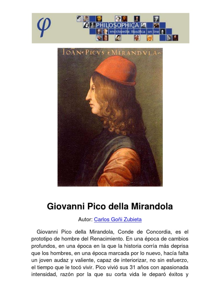 Oration on the dignity of man mirandola giovanni pico della. Carlos goñi zubieta giovanni pico della mirandola conde de concordia es el prototipo de hombre del renacimiento. Lugar y fecha de fallecimiento.