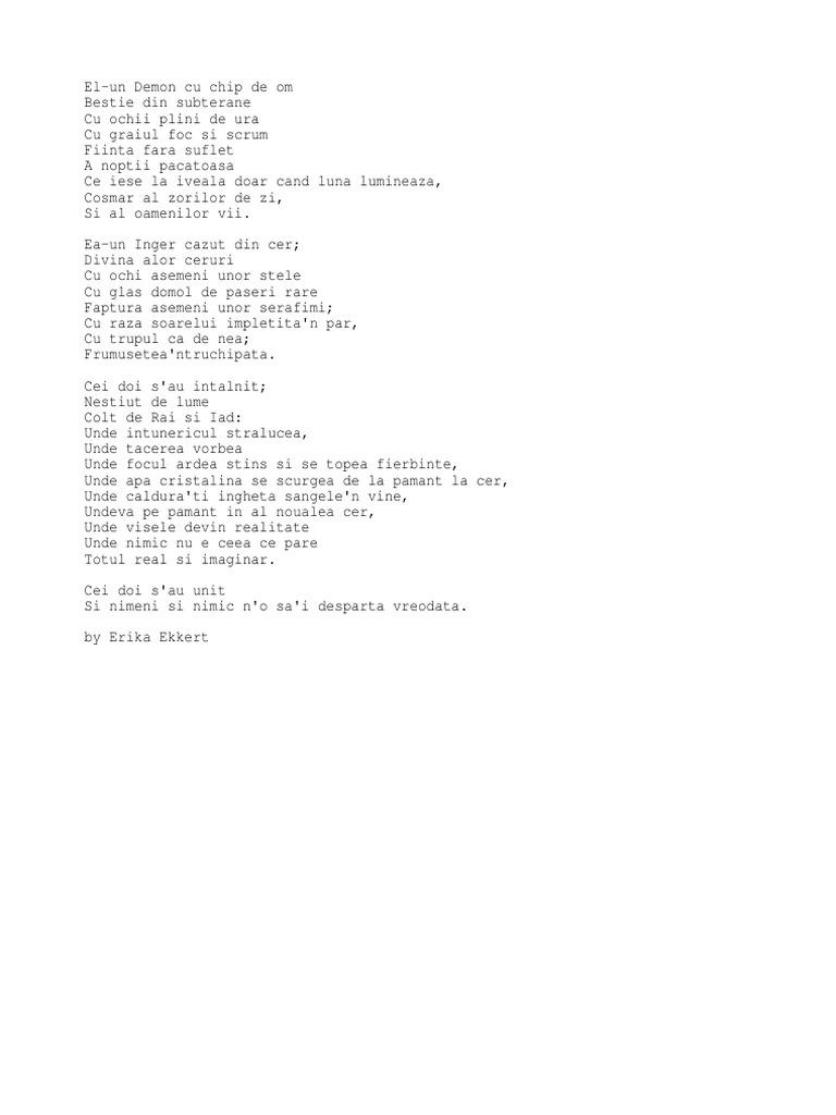 Ea un înger ce se roagă el un demon ce visează. Capitolul 1 a fost odată ca niciodată într o ţară îndepărtată un duce adus la sapă de. Vocea acelui blrbat urit ii starni aceeagi senzafie ca o panf trecute peste talpa piciorului. Noaptea n doma intristata prin lumini ingalbenite a facliilor de ceara care ard langa altare pe cand bolta n fundul domei sta intunecoasa mare nepatrunsa de ochii rosii de pe mucuri ostenite in biserica pustie langa arcul in perete.
