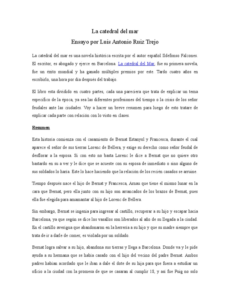 La catedral del mar libro resumen. Bajo la corona de aragón la ciudad condal se encuentra en su momento de mayor prosperidad y los habitantes del humilde barrio de pescadores de la ribera deciden construir con el dinero de unos y el esfuerzo de otros el mayor templo mariano jamás. Bernat estanyol servidor feudal de navarcles principado de cataluña siglo xiv se casa con francesca esteve. Universidad literaria 202 views. La historia se desarrolla en barcelona en un barrio humilde de pescadores que deciden construir con gran esfuerzo la catedral de santa maría de la mar.