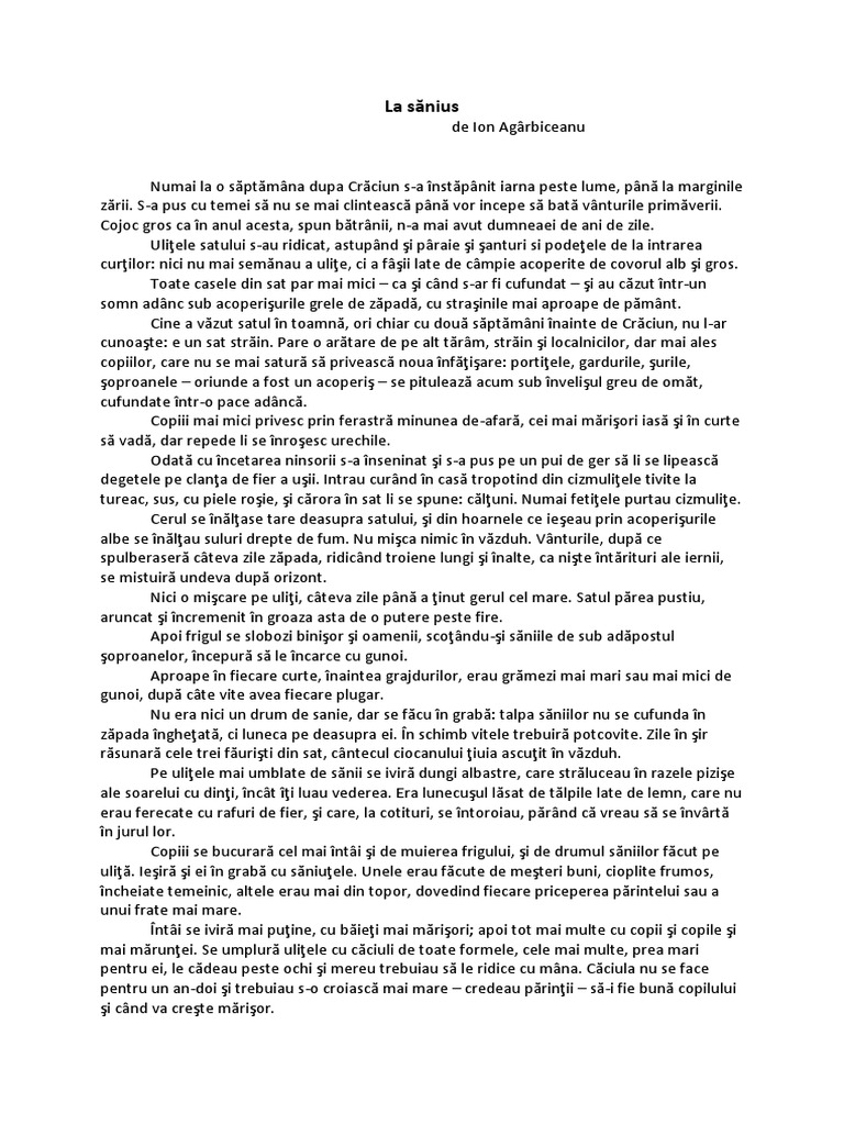 La sanius de ion agarbiceanu pdf. însă când frigul se mai domoli copii spre marea lor bucurie au început să iasă. 0 stele 0 review uri. Fisa de lucru pentru cei care nu au putut deschide fisa cealalta tot cu acest titlu deoarece era redactata in office 2010. La inceputul saptamanii fluturau rar cativa fulgi de nea prin vazduhul sur.