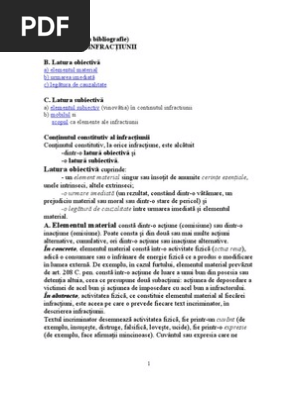 1 prin latura obiectivă a unei infracţiuni se înţelege totalitatea condiţiilor cerută de norma de incriminare privind actul de conduită pentru existenţa infracţiunii latura obiectivă a infracţiunii se realizează prin manifestarea exterioară a persoanei acţiune sau inacţiune care lezează valorile sociale ocrotite prin legea penală obiectul infracţiunii atingere care constă într o schimbare în realitatea obiectivă denumită urmare infracţională. Lipsa scopului însuşirii pe nedrept infracţiunea de violare de domiciliu latura obiectivă operarea autorităţii de lucru judecat în materie penală. Latura obiectivă a infracțiunii de furt prevăzute de art. Referat online gata facut.