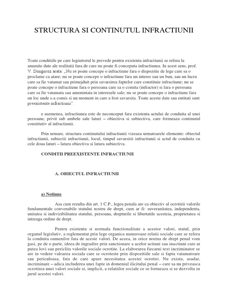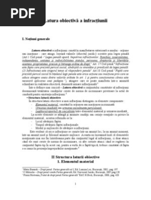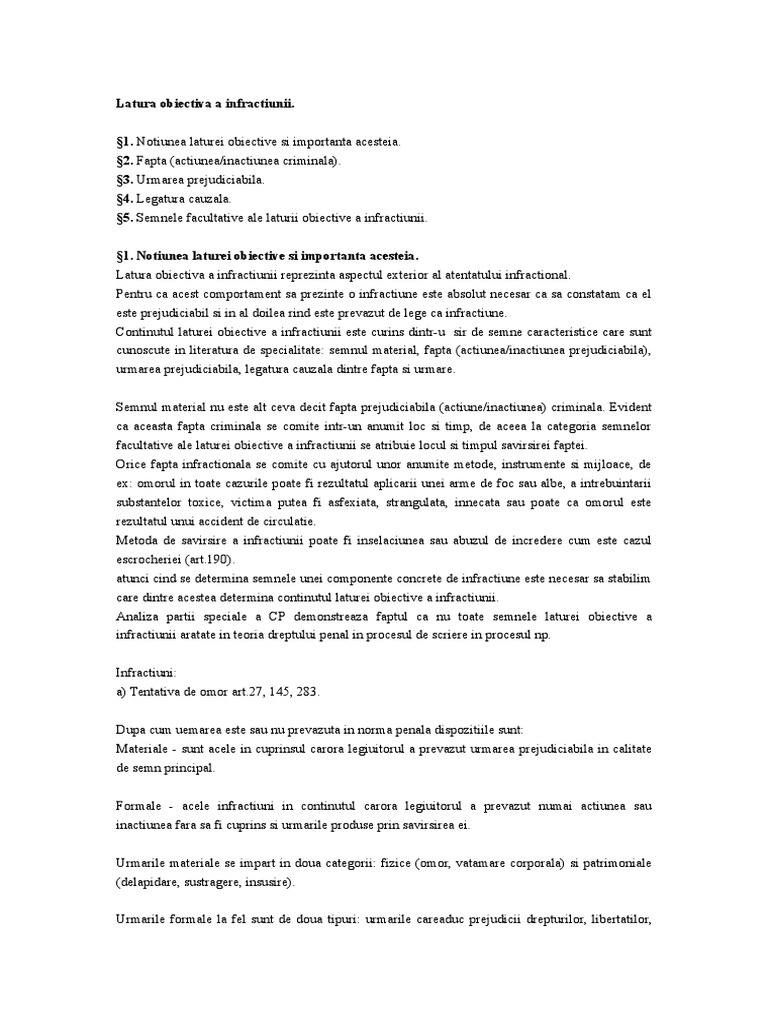 Latura obiectiva a infractiunii. Recidivă concurs de infracţiuni pluralitate intermediară contopire în concursul judecăţii admisibilitatea unei astfel de cereri direct în recurs. şi conţinutul constitutiv al infracţiunii structura infracţiunii. Latura obiectiva infractiuni de rezultat existenta lor este conditionata de moartea victimei chiar daca act faptuitorului nu a fost singura cauza ci la ea s au adaugat factori preexistanti concomitenti sau ulteriori ce au concurat la producerea rezultatului. Elementul material acţiunea sau inacţiunea incriminată cerinţe esenţiale urmarea imediată şi legătura de cauzalitate între acţiunea sau inacţiunea care constituie elementul material şi urmarea imediată v.