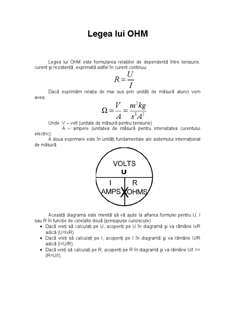 Legea lui ohm formula. Si deci rezistenta echivalenta va fi r r r putem generaliza legea lui ohm pentru intreg circuitul. Rezistenţa electrică r a unui conductor este mărimea fizică scalară egală cu raportul între tensiunea u aplicată la capetele lui şi intensitatea curentului i ce l străbate. E tensiunea electromotoare măsurată în volți v. Legea lui ohm spune că într un circuit intensitatea i curentului electric este direct proporțională cu tensiunea aplicată și invers proporțională cu rezistența r din circuit.