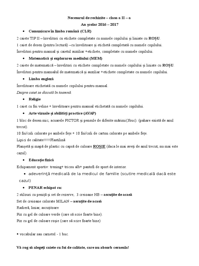 Lista de rechizite pentru fiecare clasa. Gama variata de o calitate superioara. Suntparinte ro 25 august 2014 24514 vizualizări. Clasa i scoala elf este o lista de rechizite pentru clasele de la scola elf javascript pare a fi dezactivat in browser ul dumneavoastra.