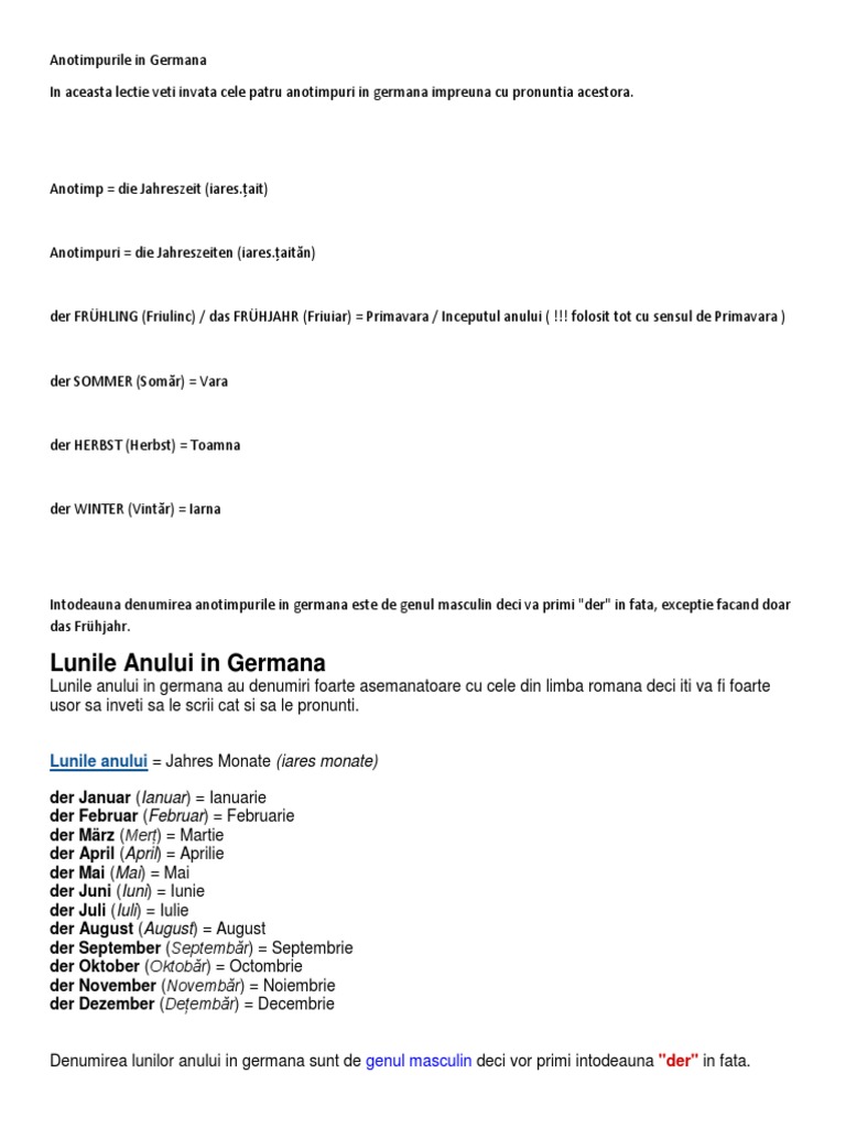Lunile anului în aproape toate limbile sunt relativ asemănătoare. Schwarz negru dieser bleistift schreibt schwarz. Anotimp die jahreszeit iares țait anotimpuri die jahreszeiten iares țaităn der frühling friulinc das frühjahr friuiar primavara inceputul anului. Astfel dacă stăpâniți limba engleză și cunoașteți lunile în engleză nu o să vă fie greu să le rețineți pe cele în limba germană.