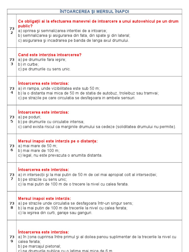 Pe o distanţă mai mare de 50 m. C la ieşirea de pe proprietăţi alăturate drumurilor publice. Este interzis mersul înapoi la ieşirea de pe proprietăţi alăturate drumurilor publice pe o distanţă mai mare de 50 m şi în situaţiile în care întoarcerea este interzisă exceptând drumurile cu sens unic unde este permis mersul înapoi. în toate situaţiile în care întoarcerea este interzisă cu excepţia drumurilor cu sens unic.