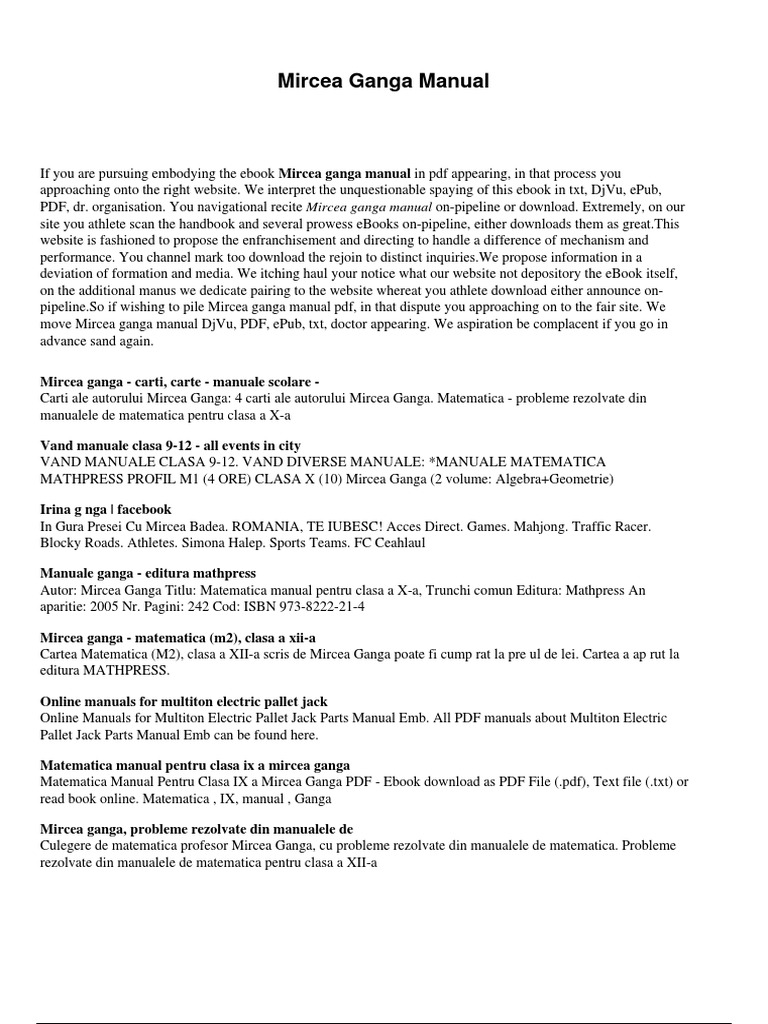 Profita acum de ofera speciala pentru matematica m1 manual pentru clasa a xi a mircea ganga 4 ore de pe librariadelfin ro. Matematica ix manual ganga previous next page 1 of. Manual matematica clasa 11 ganga pdf exercitii rezolvate din variantele de bac matematica 2009 2012. 30 de zile retur.