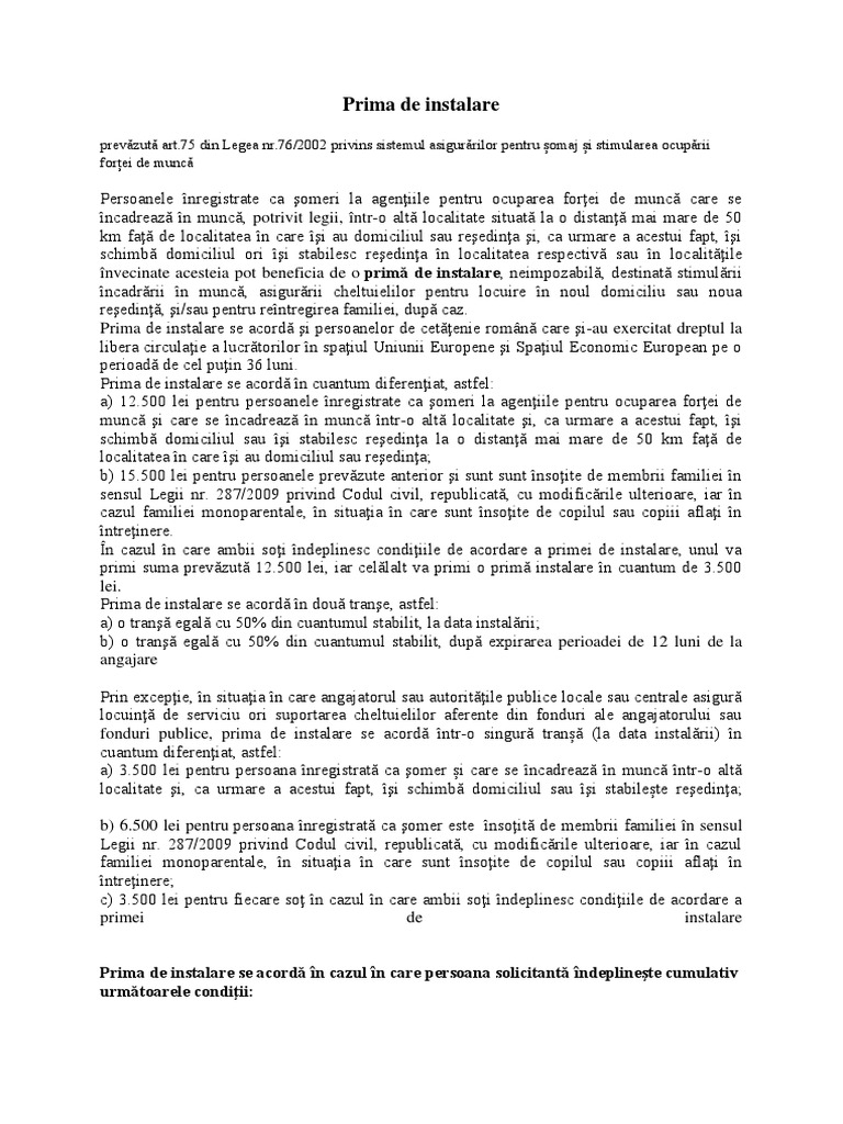 Prima de instalare pentru cadrele didactice aflate la început de drum redevine obligatorie ca urmare a unei decizii înaltei curţi de casaţie şi justiţie îccj într un proces al sindicatelor din educaţie. Liderul sindical a publicat și un model de cerere pentru obținerea primei de instalare pe care doritorii o vom completa și depune la unitățile de învățământ. în raport de dispozițiile mai sus citate prima de instalare trebuie acordată în condițiile art. Se poate acorda prima de instalare termenul limita 5ani formuland cerere catre directorul unitatii care la randul sau o transmite centrului bugetar apartinator iar acesta aproba acordarea si acorda daca exista fonduri fondurile trebuie sa existe numai daca au fost cuprinse in proiectul de buget ce se inainteaza primariei tot de catre centrul bugetar iar primaria aproba si repartizeaza.