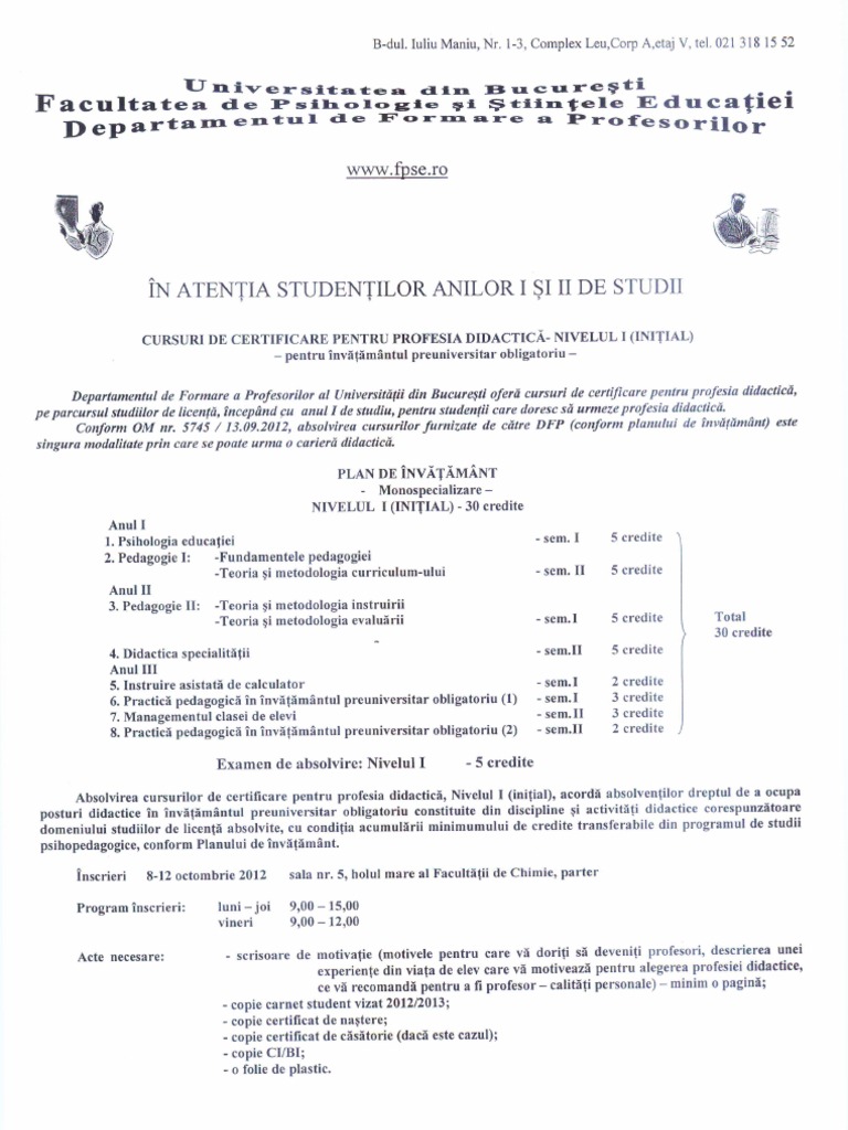 Copia chitanței de achitare a taxei se transmite electronic la nina militaru fpse unibuc ro până la data de 29 septembrie 2020 cu subiectul modul psihopedagogic postuniversitar. Secretariatdppd uaic ro master didactic documente privind organizarea şi funcţionarea d p p p. Candidații care nu vor transmite în termenul precizat documentul menționat mai sus vor pierde locul obţinut în urma concursului de admitere. Studenții care doresc să urmeze modulul psihopedagogic în vederea certificării unei.