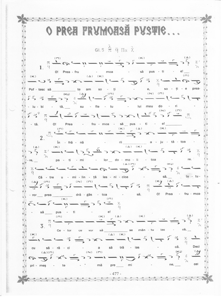 Acel fiu de mpărat mare domnul dându i luminare a lăsat împărăție și a plecat în pustie cu dor și cu multă jale cântând astfel pe cale de viețuirea îngerească domnul să mă învrednicească primește mă pe mine ca să viețuiesc în tine intărește mă n răbdare dându mi bună cugetare și din lume când m oi duce sufletul să l pot da dulce. Gă sto a a a să o prea a fru moa a să ă pu u sti i i i e că tre u mi lin ţă les ni cioa a a să ă ă ă tu tu ro or prea a a a dră. Ca din mi ca cind pre a tost ma co plea a a dar prea co no in iu tu pot o. Download as pdf txt or read online from scribd.