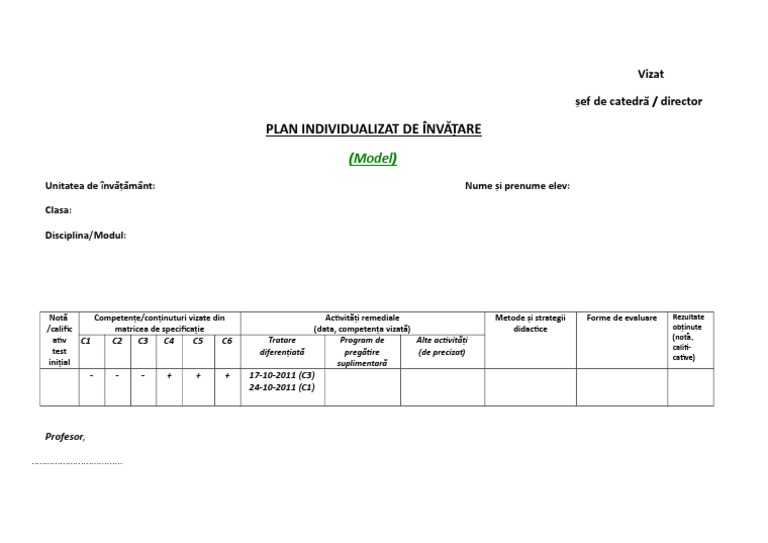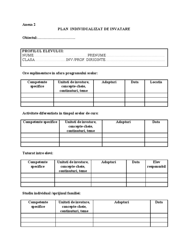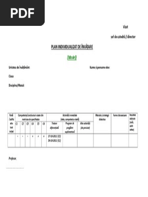 Plan individualizat de invatare. Plan individual de invatare pentru disciplina matematica matrice de evaluare individuala nota obtinuta deficiente observate competente si nivel de performanta strategii actiuni de remediere obs. De multe ori profesorul nu are nevoie de un plan special pentru aceşti elevi. Andreea nicoleta grupul scolar ovid caledoniu tecuci. Dificultăţi de învăţare.
