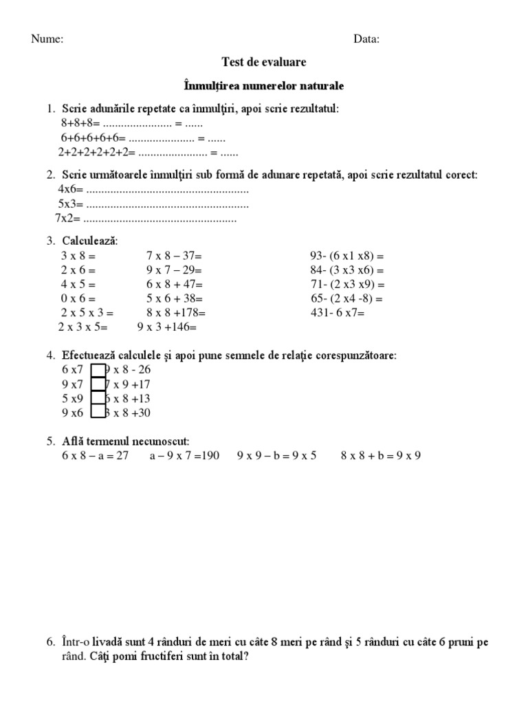 Probleme matematica clasa 2 cu inmultire. 0 stele 0 review uri. 13 intrebari unele dintre ele continand mai multe exercitii. Test dat la incheierea capitolului inmultire clasa a ii a. Liliacul somnoros ordinea operaţiilor matematica clasa a iii a.