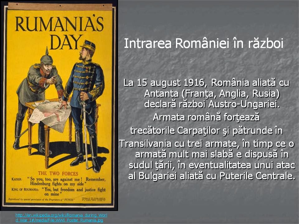 Participarea româniei la primul război mondial cuprinde totalitatea măsurilor și acțiunilor de ordin politic diplomatic și militar desfășurate de statul român singur sau împreună cu aliații între 13 28 iulie 1914 și 28 octombrie 11 noiembrie 1918 în vederea atingerii scopului politic principal al participării la război realizarea statului național unitar român. 1 politica externă românească între 1878 1914. Războiul pentru întregire națională și marea unire schița lecției a viii a. Diplomatia romaneasca la sfarsitul secolului al xix lea sl.