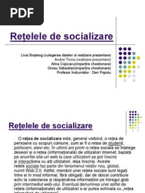 Jechiu andrei utm ti anul iii popușoi cristina utm fi anul ii. O rețea de socializare este general vorbind o rețea de persoane cu scopuri comune cum ar fi o rețea de studenți politicieni dar chiar și de hoți în contrast cu rețelele tehnice ca rețeaua de telefon sau gaz metan. O retea de socializare este general vorbind o retea de persoane cu scopuri comune cum ar fi o retea de studenti politicieni dar chiar si de hoti in contrast cu retelele tehnice ca reteaua de telefon sau gaz metan. Imbunatatirea calitatii comunicarii in scris a utilizatorilor.