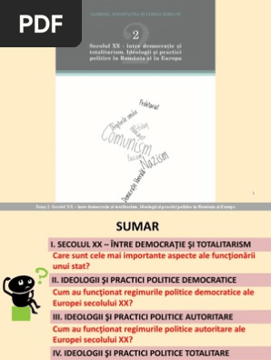 Model subiect 2013 confruntarea dintre democraţie şi totalitarism a fost o caracteristică a europei secolului al xx lea începând cu perioada interbelică. Totalitarismul este o ideologie sau un regim politic în care statul controlează societatea în totalitate controlează viaţa politică economică culturală şi chiar pe cea privată a indivizilor folosind în acest scop toate. A ideologii democratice si totalitare. în secolul xx în europa şi în lume au existat atât ideologii democratice cum ar fi liberalismul conservatorismul socialismul cât şi ideologii totalitare cum ar fi fascismul nazismul comunismul.