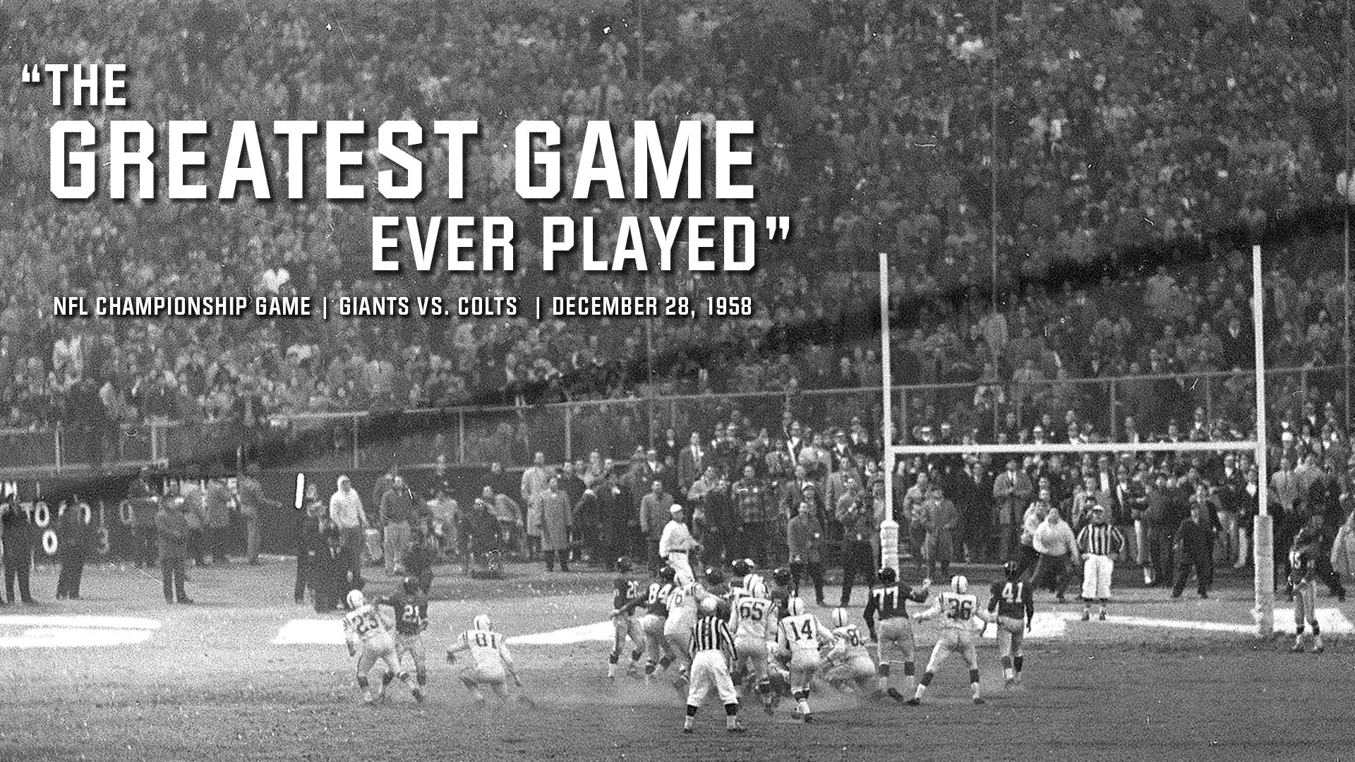 The greatest game ever played nfl. The game played at yankee stadium in new york attracted a national television audience and became known in football lore as the greatest game ever played. The 1958 nfl championship game which was nicknamed the greatest game ever played was somewhat predictably named the best contest in nfl history. It was the first nfl playoff game to be decided in sudden death overtime. Classicgamehighlights colts giants the nfl throwback.