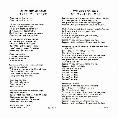 You can t buy me love lyrics. Money can t buy me love can t buy me love everybody tells me so can t buy me love no no no no say you don t need no diamond rings and i ll be satisfied tell me that you want the kind of things that money just can t buy i don t care too much for money money can t buy me love can t buy me love everybody tells me so can t buy me love no no. Can t buy me love love can t buy me love i ll buy you a diamond ring my friend if it makes you feel all right i ll get you anything my friend if it makes you feel all right cause i don t care too much for money for money can t buy me love i ll give you all i ve got to give if you say you love me too i may not have a lot to give. Can t buy me love oh no no no no say you don t need no diamond rings. About can t buy me love can t buy me love is a song composed by paul mccartney credited to lennon mccartney and released by the english rock band the beatles on the a side of their sixth british single with you can t do that as the b side in march 1964.